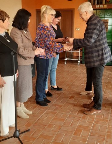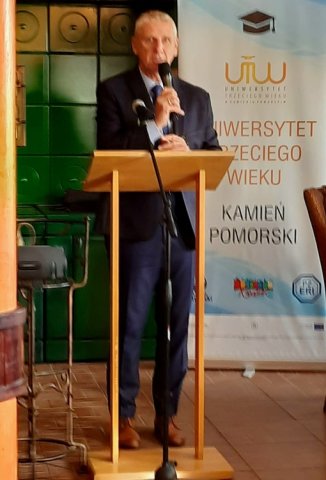 10 października 2025 roku po raz czternasty uczestniczyliśmy w uroczystości inauguracji kolejnego roku akademickiego naszego Uniwersytetu. Spotkanie odbyło się tradycyjnie w Domu Weselnym Pana Wiesława Żelka. W Inauguracji wzięło udział dwóch naszych opiekunów – profesor Ryszard Handke ze Szczecina – nasz opiekun dydaktyczny i burmistrz Kamienia Pomorskiego – pan Stanisław Kuryłło – nasz opiekun honorowy oraz licznie przybyli członkowie UTW. Impreza przebiegała wg naszego ustalonego programu. Na początku nasz uniwersytecki zespół Fantazja zaśpiewał pieśń Gaude Mater Polonia, po czym prezes UTW przedstawiła w skrócie podstawowe informacje: aktualną ilość członków - 74 os., założenia na kolejny rok 2025/26, informacje na najbliższe dni działalności i przypomniała wszystkim członków Uniwersytetu o obowiązkach i ogólnym programie. Następnie głos zabrał burmistrz naszego miasta – Stanisław Kuryłło, który poinformował m.in. o aktualnej sytuacji dotyczącej remontu i przystosowania starej siedziby do nowoczesnych wymogów dla wszystkich seniorów. Otrzymaliśmy także informację o postępach w rewitalizacji przy ulicy Mickiewicza miejsca do wypoczynku dla mieszkańców miasta, regionu oraz przybywających do nas turystów. Miejsce to ma być wizytówką naszego miasta. Następnie odbyło się uroczyste przyjęcie naszych nowych osób do grona słuchaczy Uniwersytetu – czyli ślubowanie, po którym profesor Handke wręczył legitymacje UTW nowym członkiniom. W dalszej kolejności profesor Handke wygłosił ciekawy wykład na temat historii Jazzu z podkładem muzycznym. Po odśpiewaniu Hymnu Gaudeamus Igitur nasz zespół Fantazja przedstawił nam przygotowany na zakończenie części oficjalnej swój muzyczny program, składający się z kilku znanych piosenek. Uroczystość zakończyło zaproszenie wszystkich obecnych do słodkiego poczęstunku.